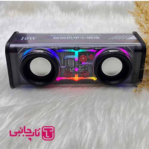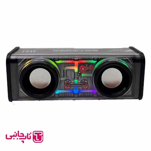 - اتصالات متنوع: این اسپیکر از طریق بلوتوث نسخه ۵.۰ به دستگاههای هوشمند متصل میشود و برد اتصال آن تا ۱۰ متر است. همچنین، وجود پورت USB Type-C، شیار کارت حافظه (Micro SD) و ورودی AUX امکان استفاده از منابع مختلف پخش را فراهم میکند.